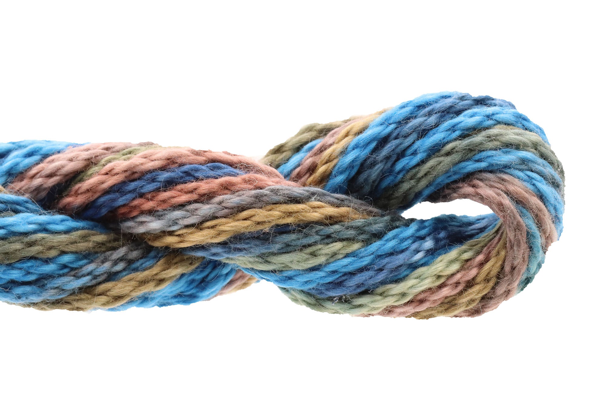 This is Watercolours from Caron Collection in color 018 Peacock. Rich variegated colors in stranded cotton. 2 strands on 13 mesh 1 strand on 18 mesh. 1 strand is about equivalent in size to #5 Perle Cotton.