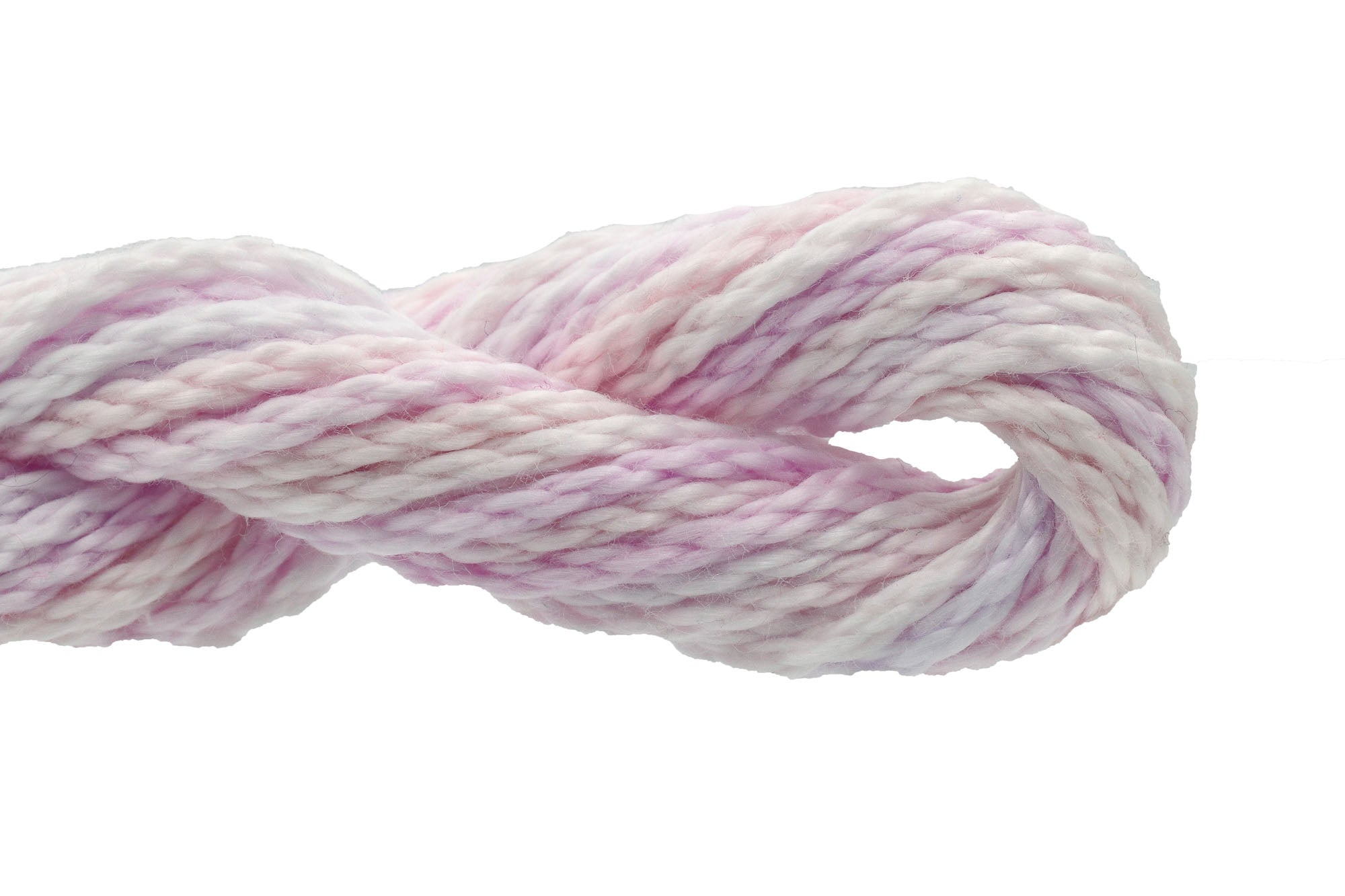 This is Watercolours from Caron Collection in color 193 Iced Lavender. Rich variegated colors in stranded cotton. 2 strands on 13 mesh 1 strand on 18 mesh. 1 strand is about equivalent in size to #5 Perle Cotton.