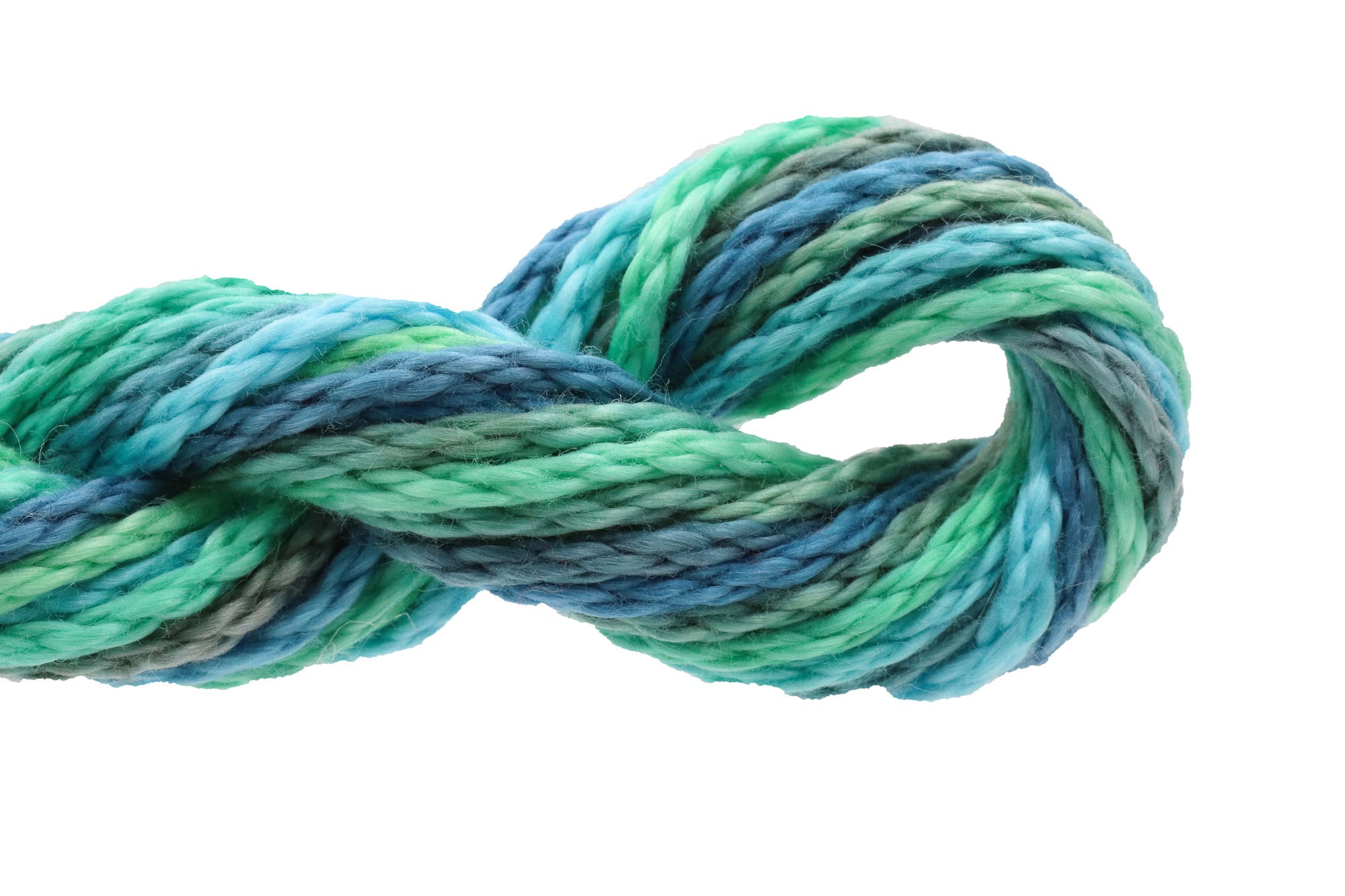 This is Watercolours from Caron Collection in color 207 Bermuda Reef. Rich variegated colors in stranded cotton. 2 strands on 13 mesh 1 strand on 18 mesh. 1 strand is about equivalent in size to #5 Perle Cotton.