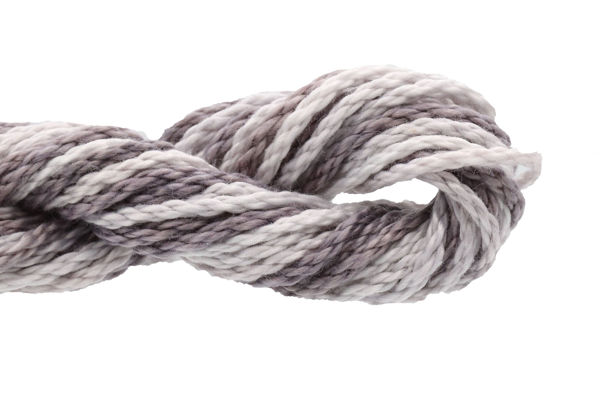 This is Watercolours from Caron Collection in color 218 Ash. Rich variegated colors in stranded cotton. 2 strands on 13 mesh 1 strand on 18 mesh. 1 strand is about equivalent in size to #5 Perle Cotton.