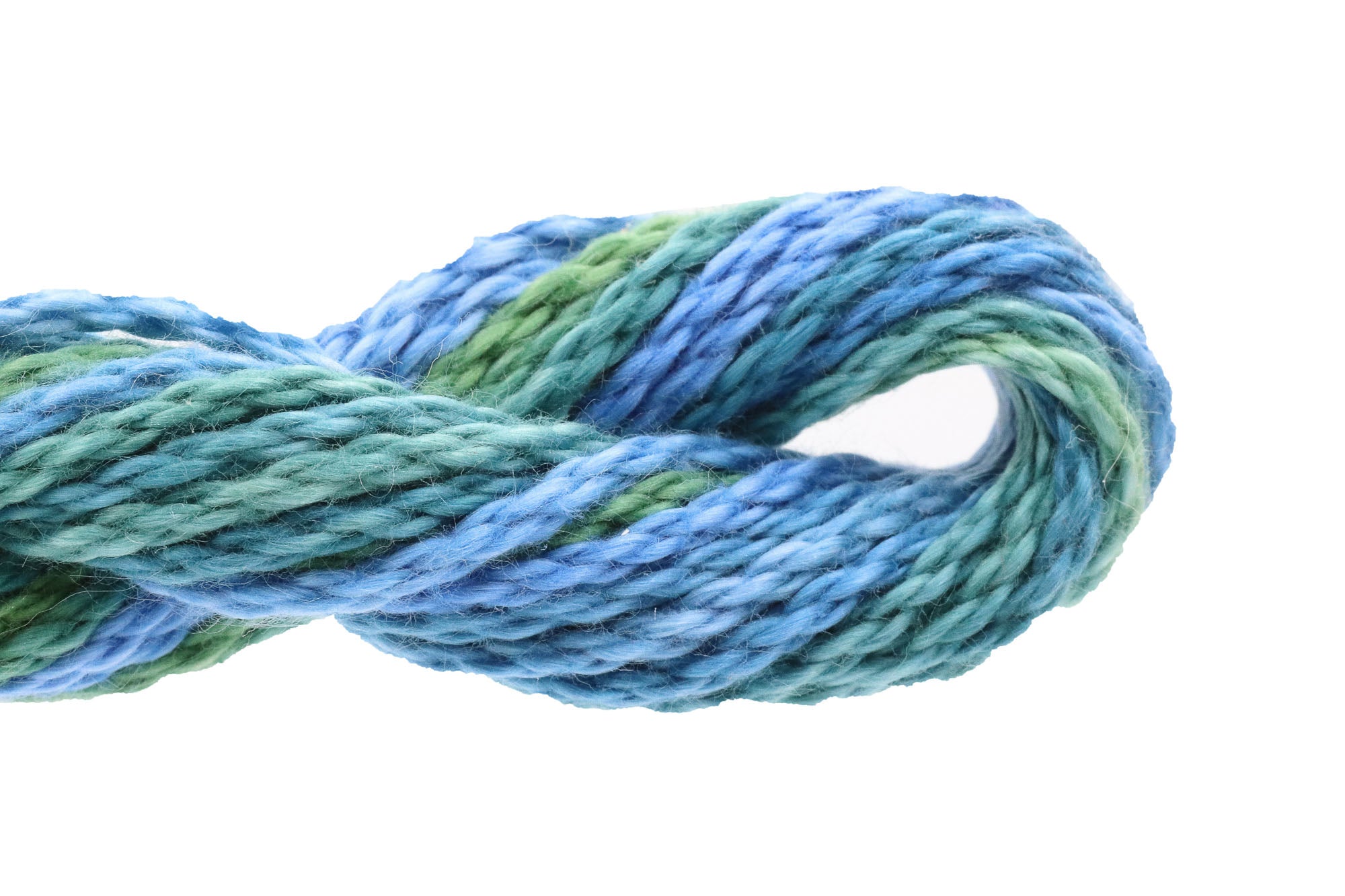 This is Watercolours from Caron Collection in color 229 Oasis. Rich variegated colors in stranded cotton. 2 strands on 13 mesh 1 strand on 18 mesh. 1 strand is about equivalent in size to #5 Perle Cotton.