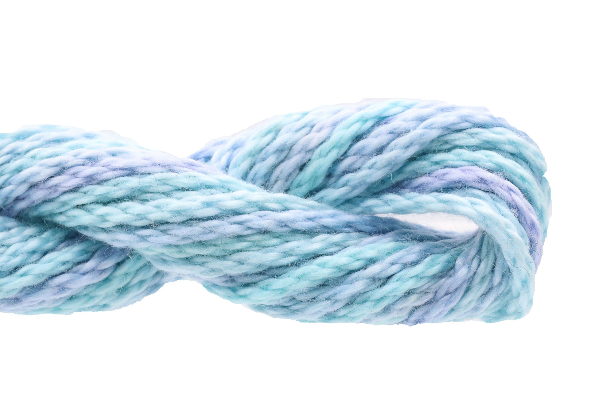 This is Watercolours from Caron Collection in color 230 Azure Skies. Rich variegated colors in stranded cotton. 2 strands on 13 mesh 1 strand on 18 mesh. 1 strand is about equivalent in size to #5 Perle Cotton.