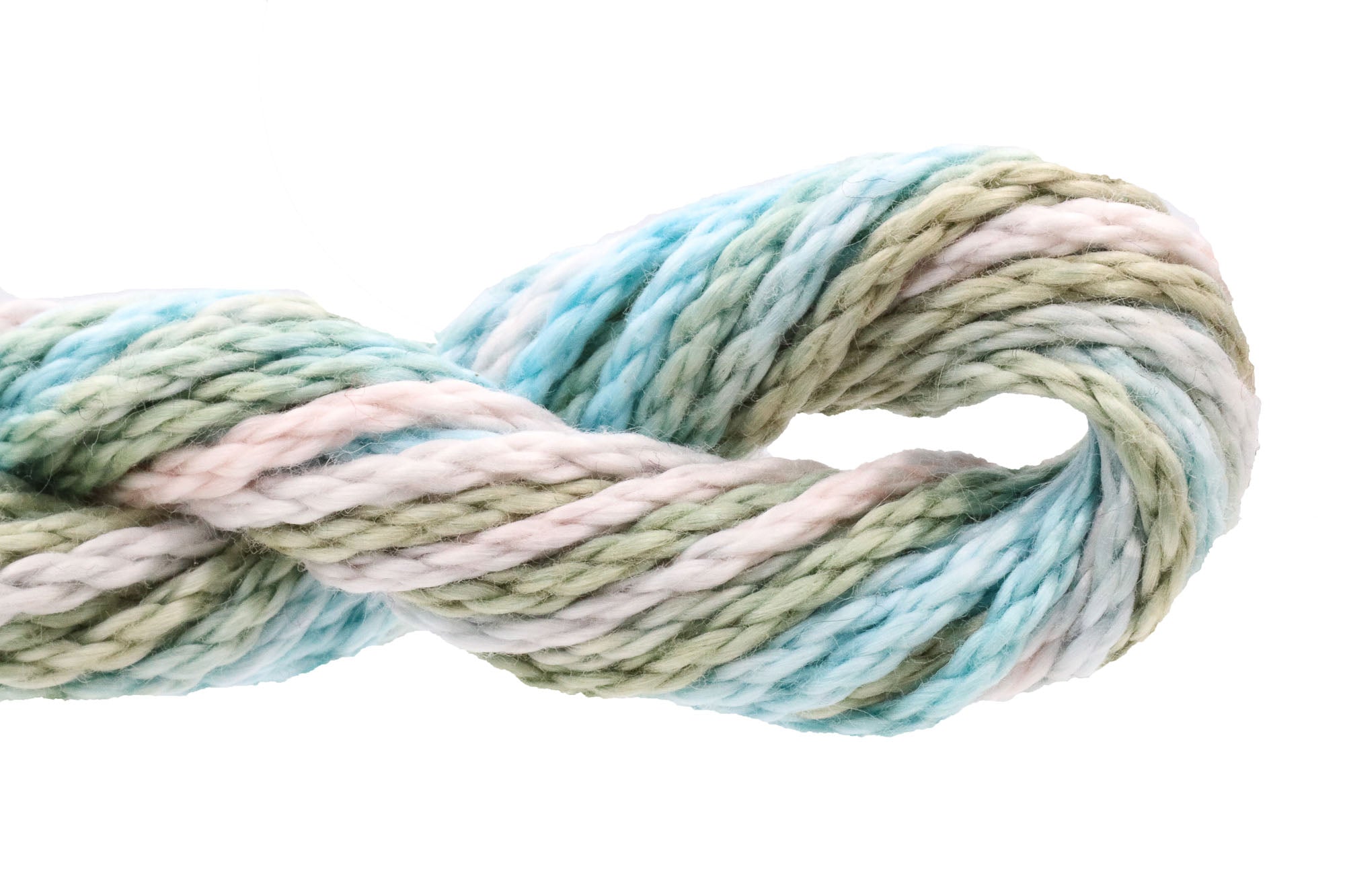 This is Watercolours from Caron Collection in color 241 Shenandoah. Rich variegated colors in stranded cotton. 2 strands on 13 mesh 1 strand on 18 mesh. 1 strand is about equivalent in size to #5 Perle Cotton.