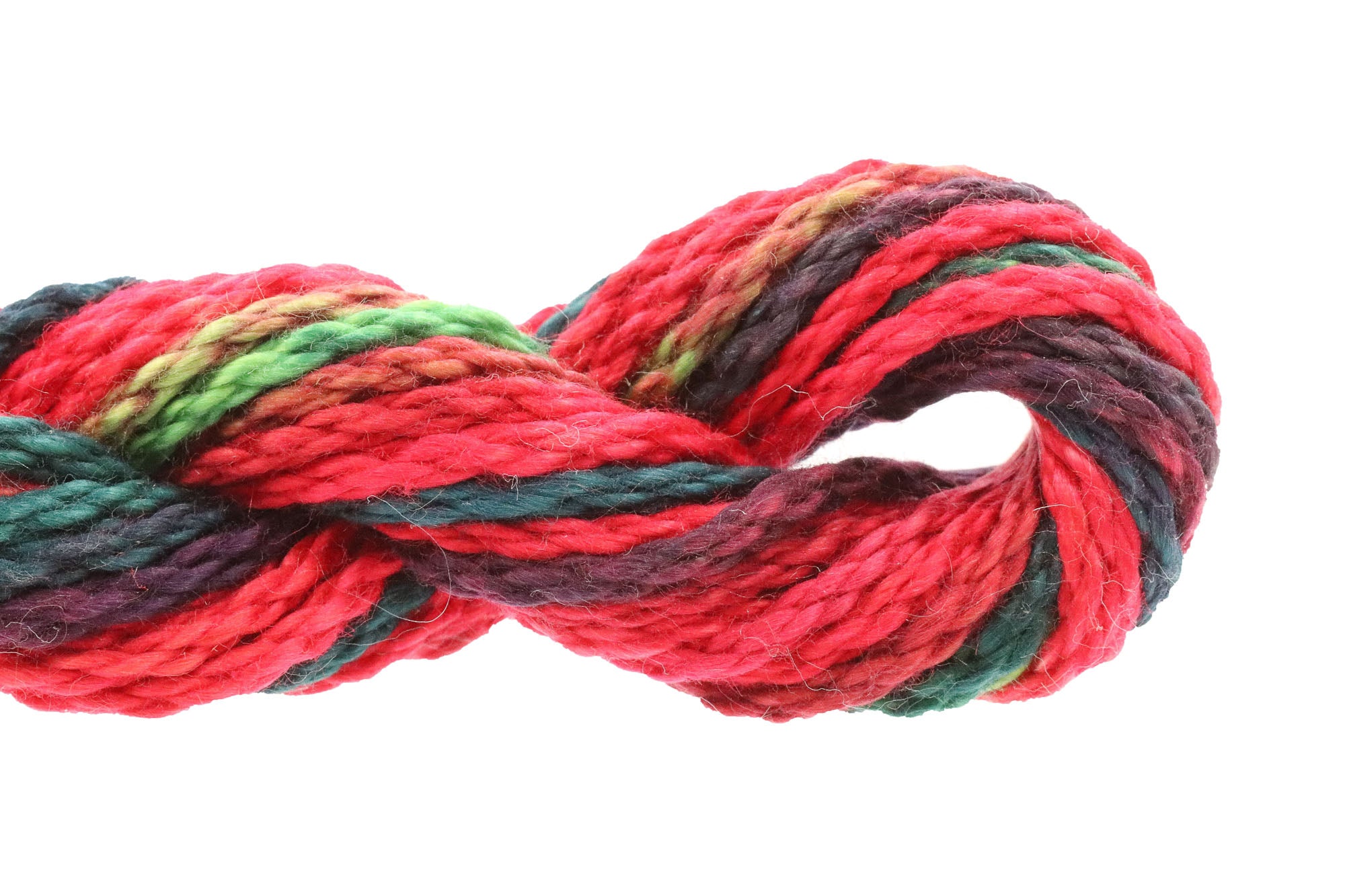 This is Watercolours from Caron Collection in color 025 Holiday. Rich variegated colors in stranded cotton. 2 strands on 13 mesh 1 strand on 18 mesh. 1 strand is about equivalent in size to #5 Perle Cotton.