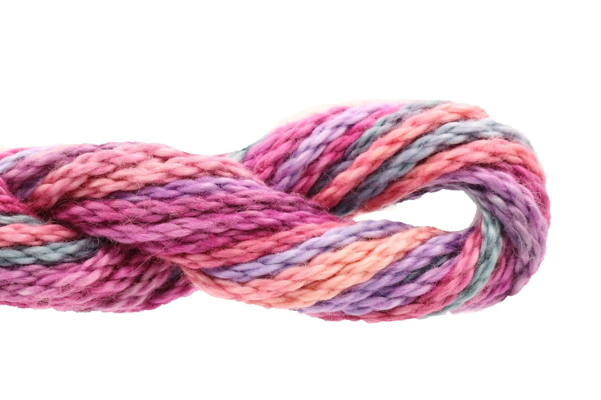 This is Watercolours from Caron Collection in color 028 Confetti. Rich variegated colors in stranded cotton. 2 strands on 13 mesh 1 strand on 18 mesh. 1 strand is about equivalent in size to #5 Perle Cotton.