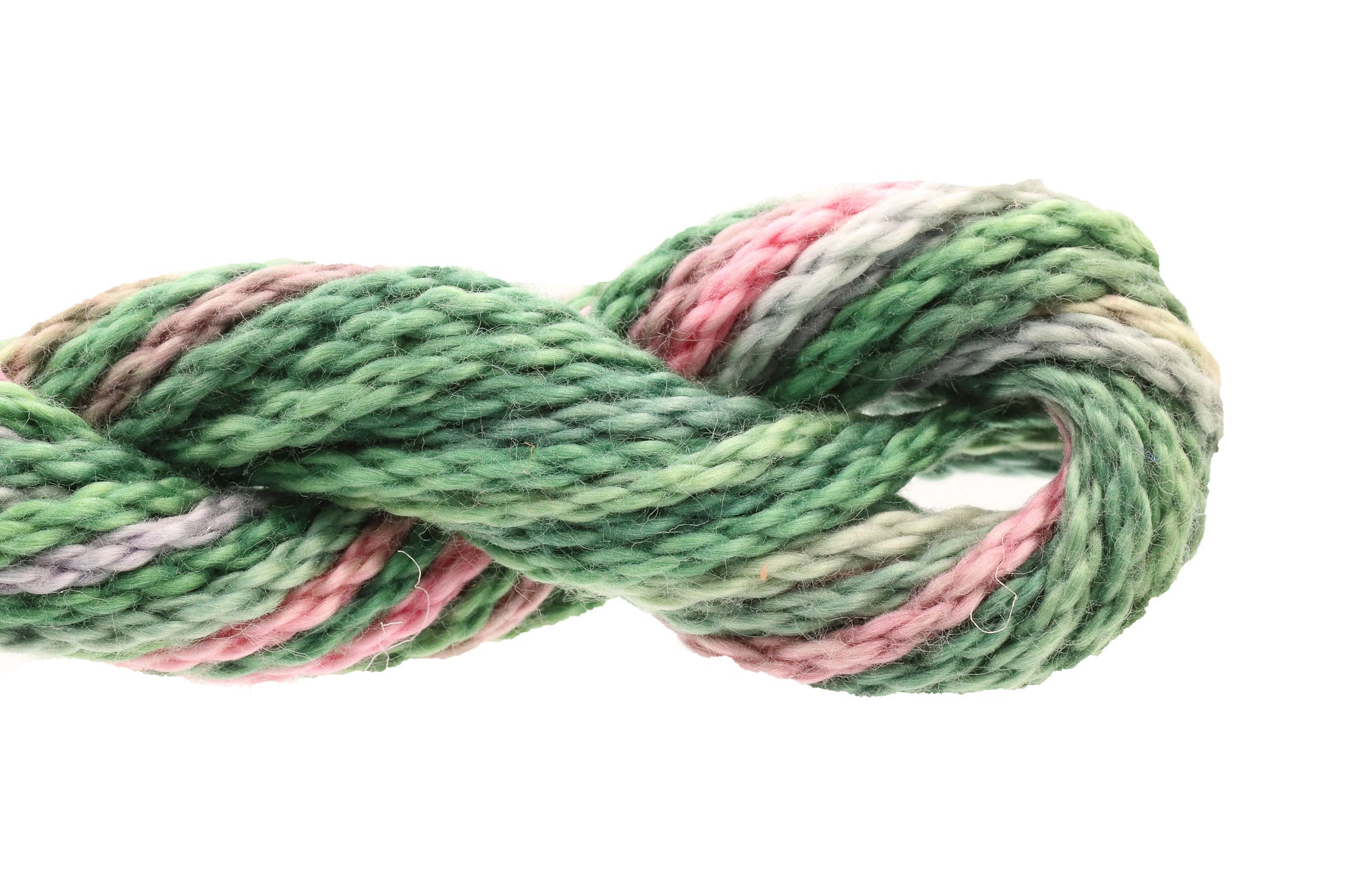 This is Watercolours from Caron Collection in color 003 Meadow. Rich variegated colors in stranded cotton. 2 strands on 13 mesh 1 strand on 18 mesh. 1 strand is about equivalent in size to #5 Perle Cotton.