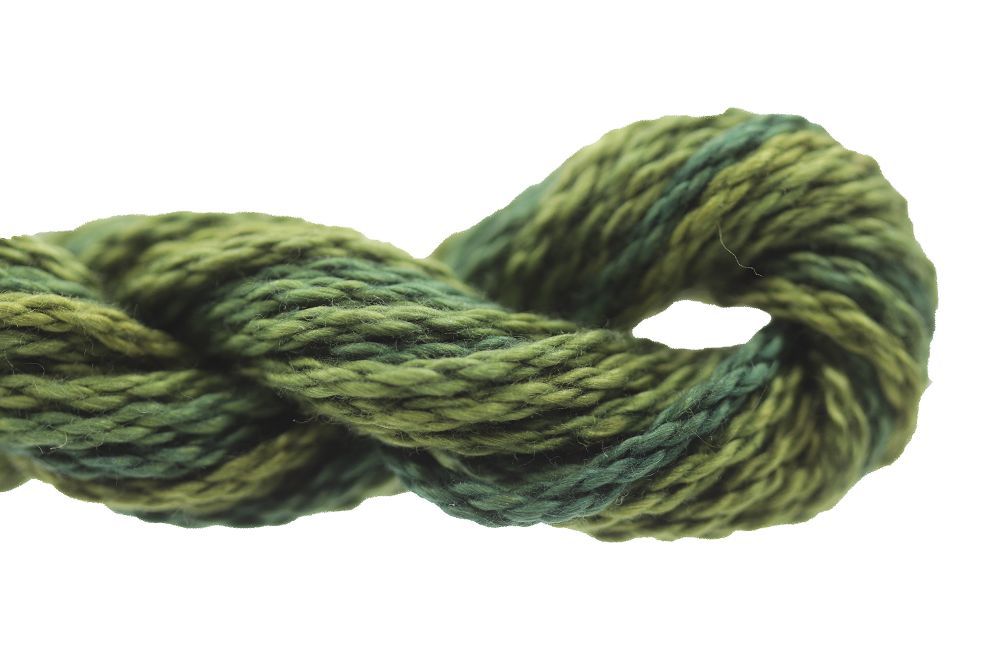 This is Watercolours from Caron Collection in color 314 Ivy. Rich variegated colors in stranded cotton. 2 strands on 13 mesh 1 strand on 18 mesh. 1 strand is about equivalent in size to #5 Perle Cotton.