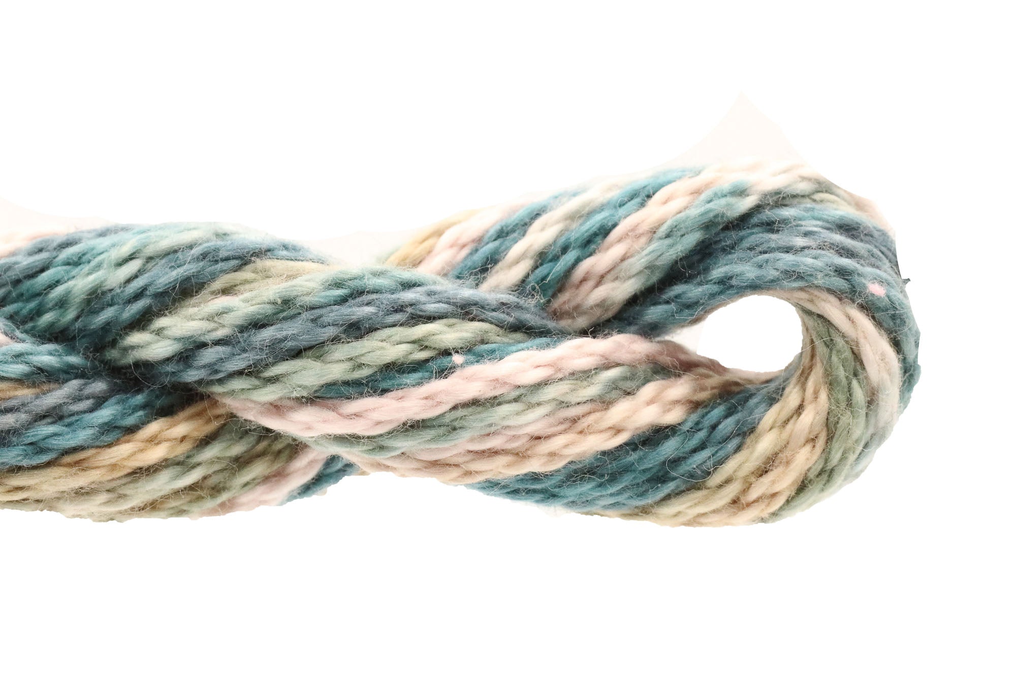 This is Watercolours from Caron Collection in color 033 Desert Sage. Rich variegated colors in stranded cotton. 2 strands on 13 mesh 1 strand on 18 mesh. 1 strand is about equivalent in size to #5 Perle Cotton.