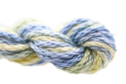 This is Watercolours from Caron Collection in color 336 Cool Waters. Rich variegated colors in stranded cotton. 2 strands on 13 mesh 1 strand on 18 mesh. 1 strand is about equivalent in size to #5 Perle Cotton.