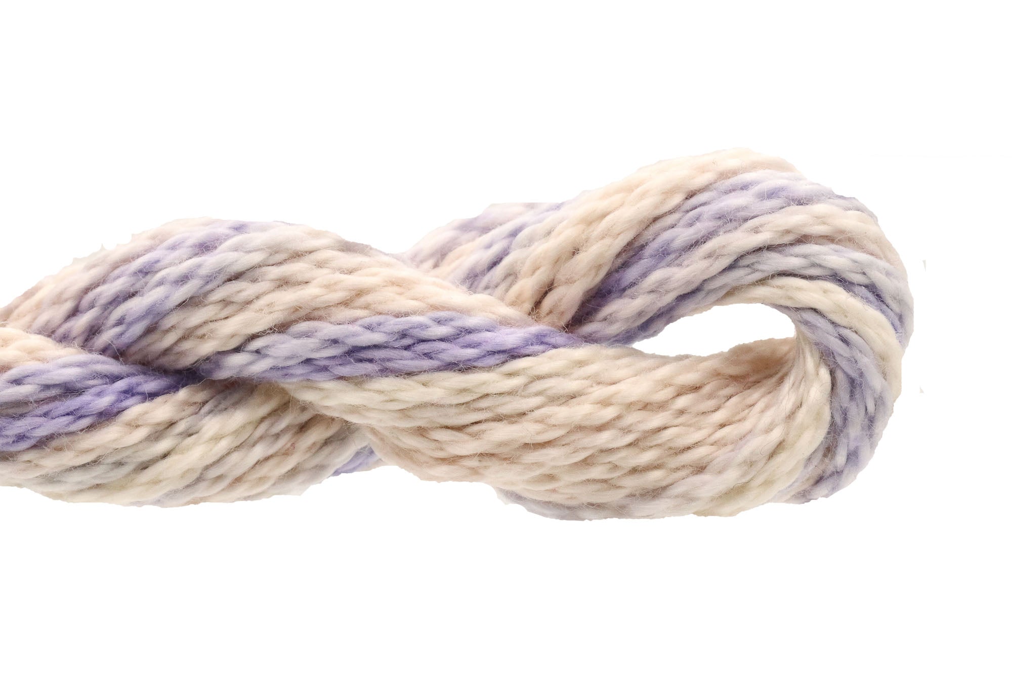 This is Watercolours from Caron Collection in color 038 Morning Mist. Rich variegated colors in stranded cotton. 2 strands on 13 mesh 1 strand on 18 mesh. 1 strand is about equivalent in size to #5 Perle Cotton.