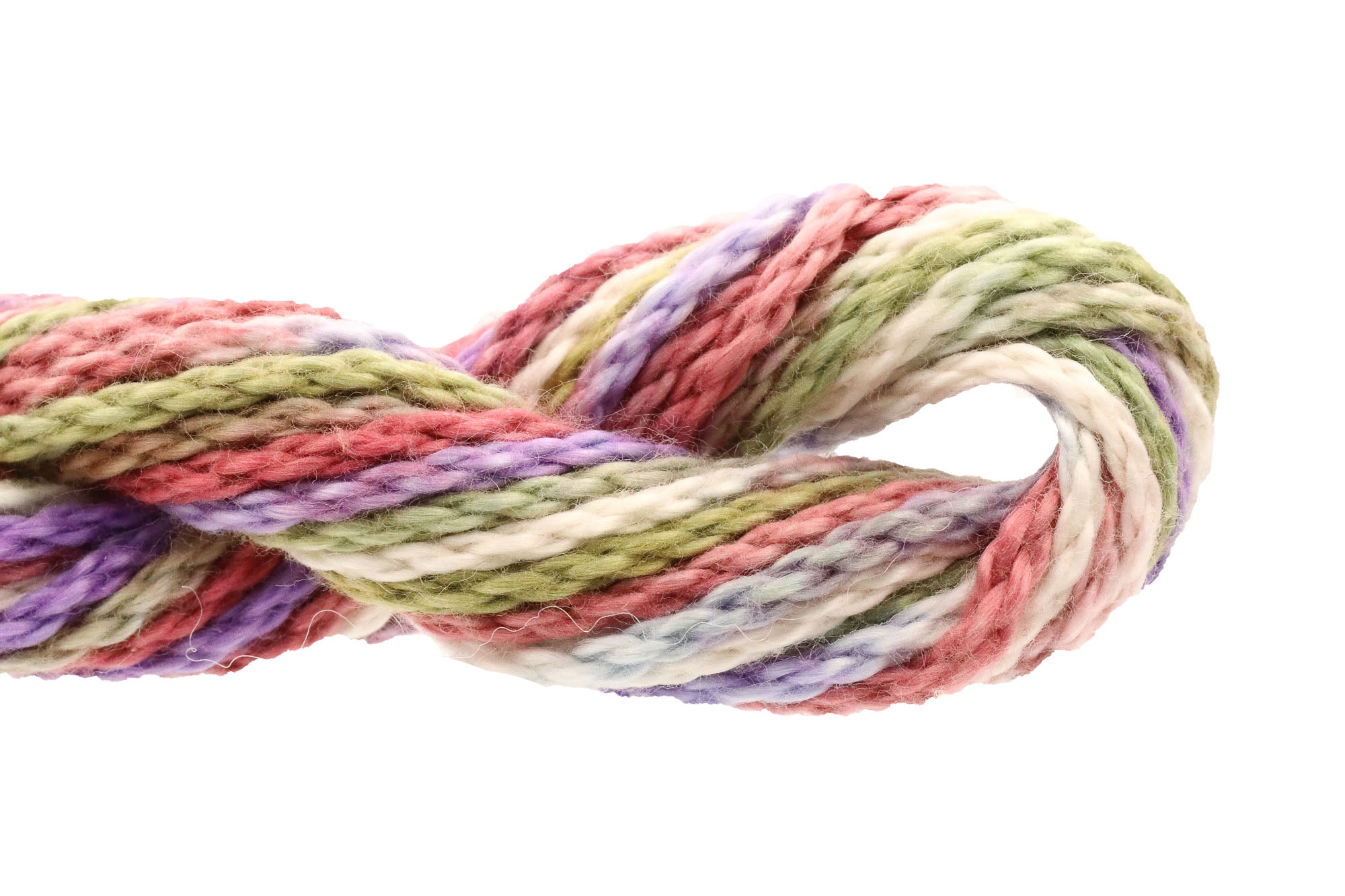 This is Watercolours from Caron Collection in color 039 Lilac. Rich variegated colors in stranded cotton. 2 strands on 13 mesh 1 strand on 18 mesh. 1 strand is about equivalent in size to #5 Perle Cotton.