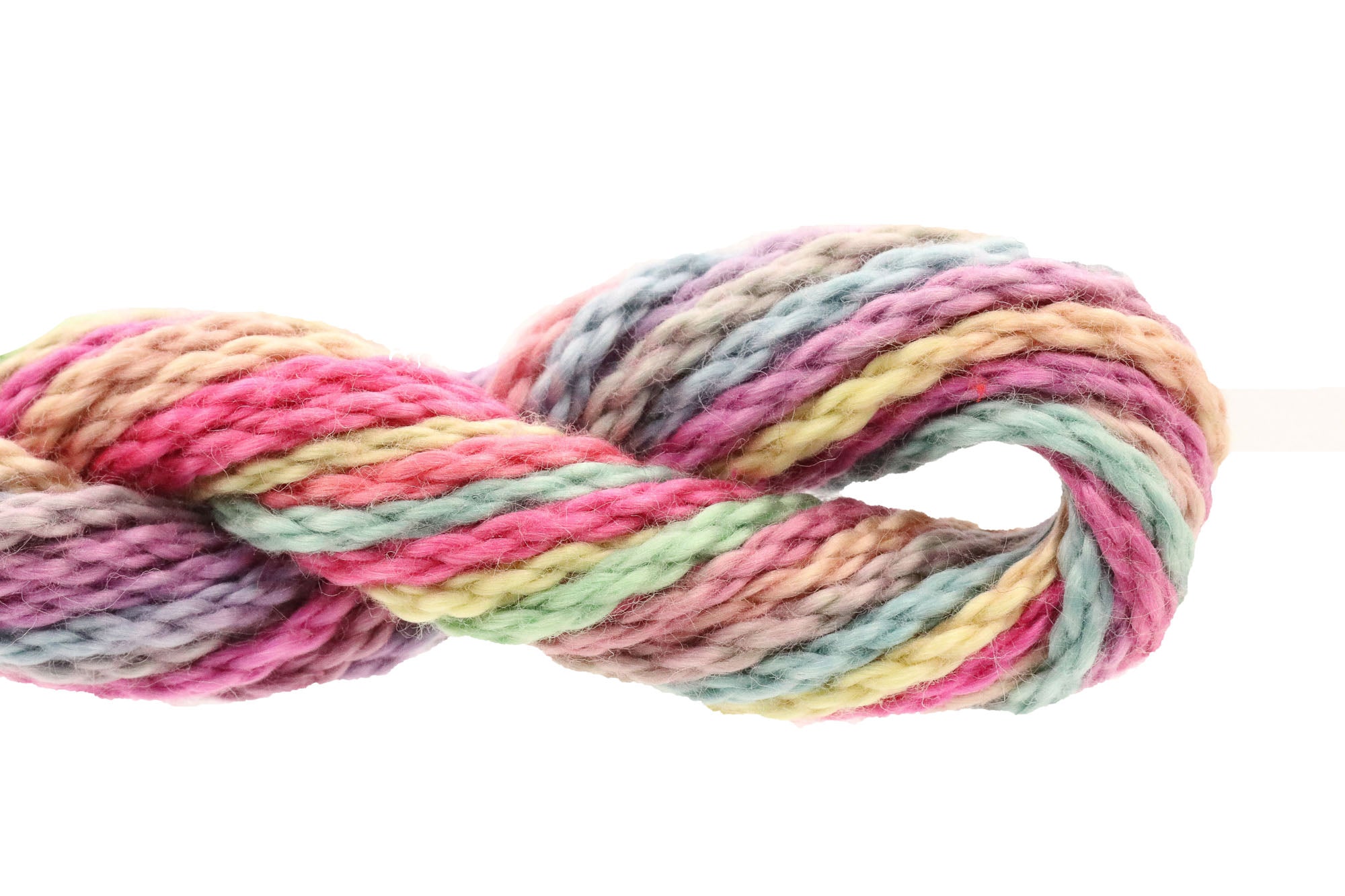 This is Watercolours from Caron Collection in color 043 Aurora. Rich variegated colors in stranded cotton. 2 strands on 13 mesh 1 strand on 18 mesh. 1 strand is about equivalent in size to #5 Perle Cotton.