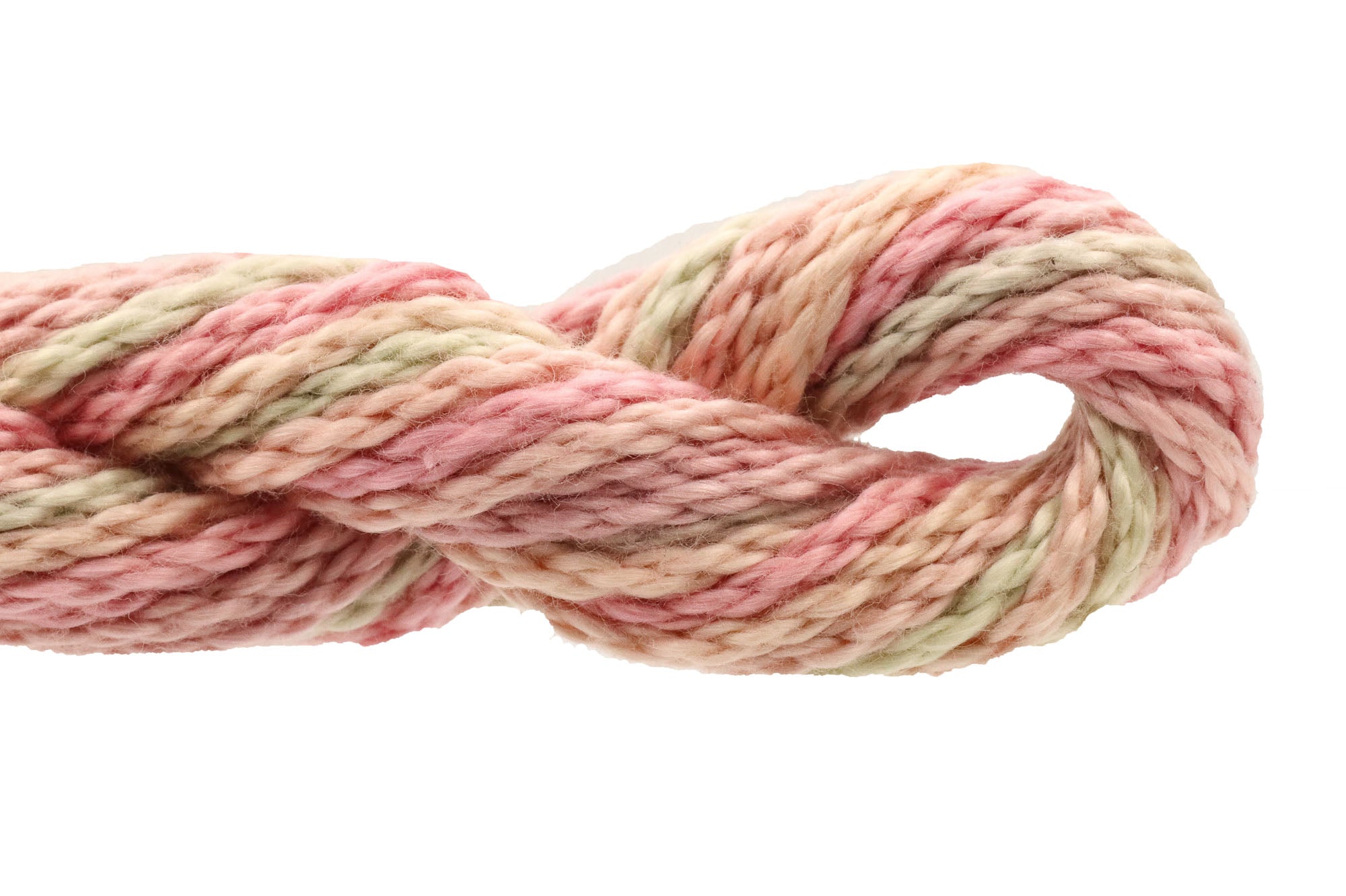 This is Watercolours from Caron Collection in color 046 Rose Blush. Rich variegated colors in stranded cotton. 2 strands on 13 mesh 1 strand on 18 mesh. 1 strand is about equivalent in size to #5 Perle Cotton.