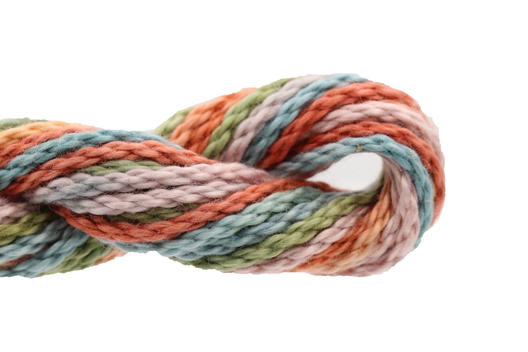 This is Watercolours from Caron Collection in color 061 Harvest. Rich variegated colors in stranded cotton. 2 strands on 13 mesh 1 strand on 18 mesh. 1 strand is about equivalent in size to #5 Perle Cotton.
