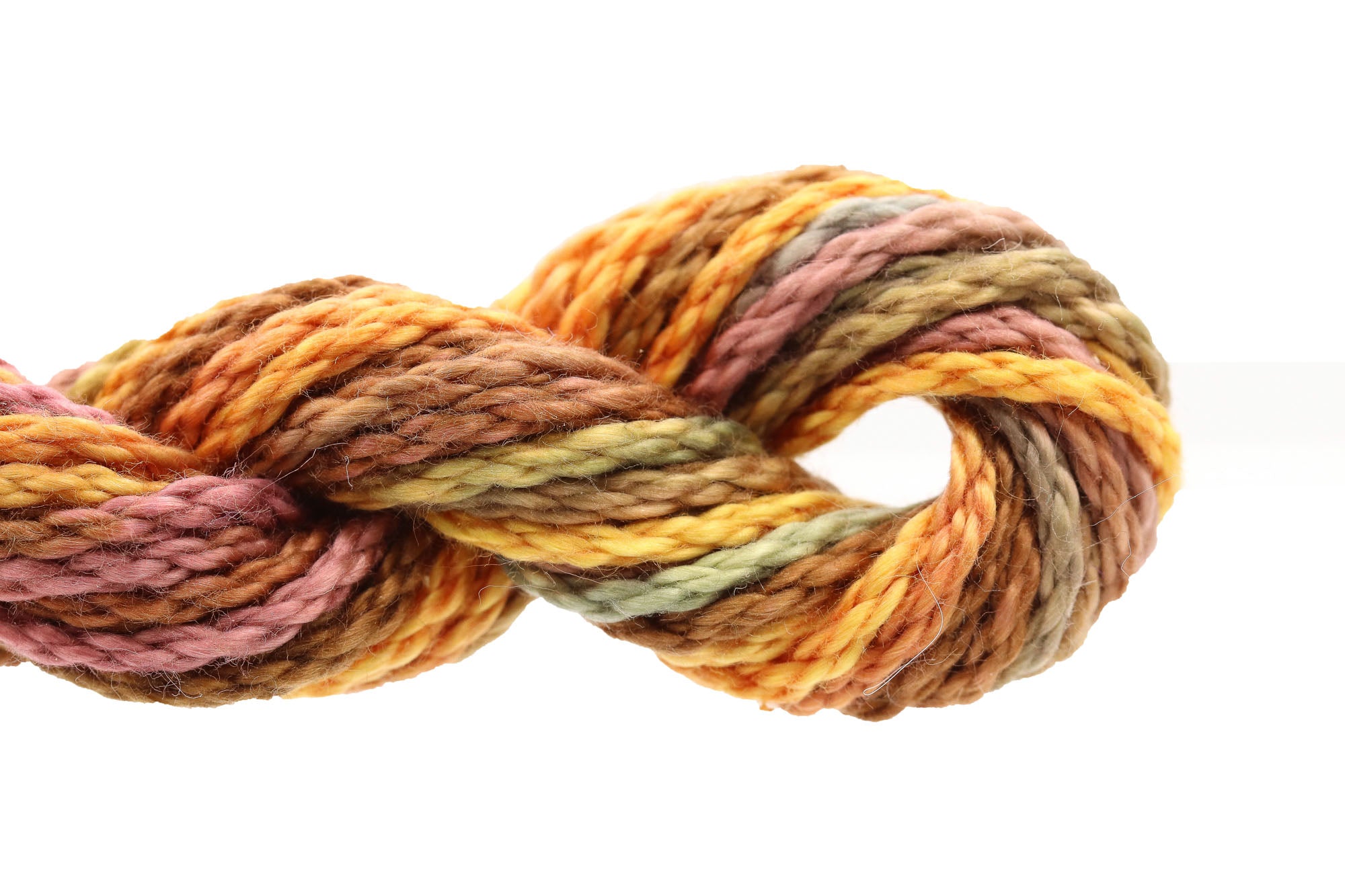 This is Watercolours from Caron Collection in color 062 Burnt Toast. Rich variegated colors in stranded cotton. 2 strands on 13 mesh 1 strand on 18 mesh. 1 strand is about equivalent in size to #5 Perle Cotton.