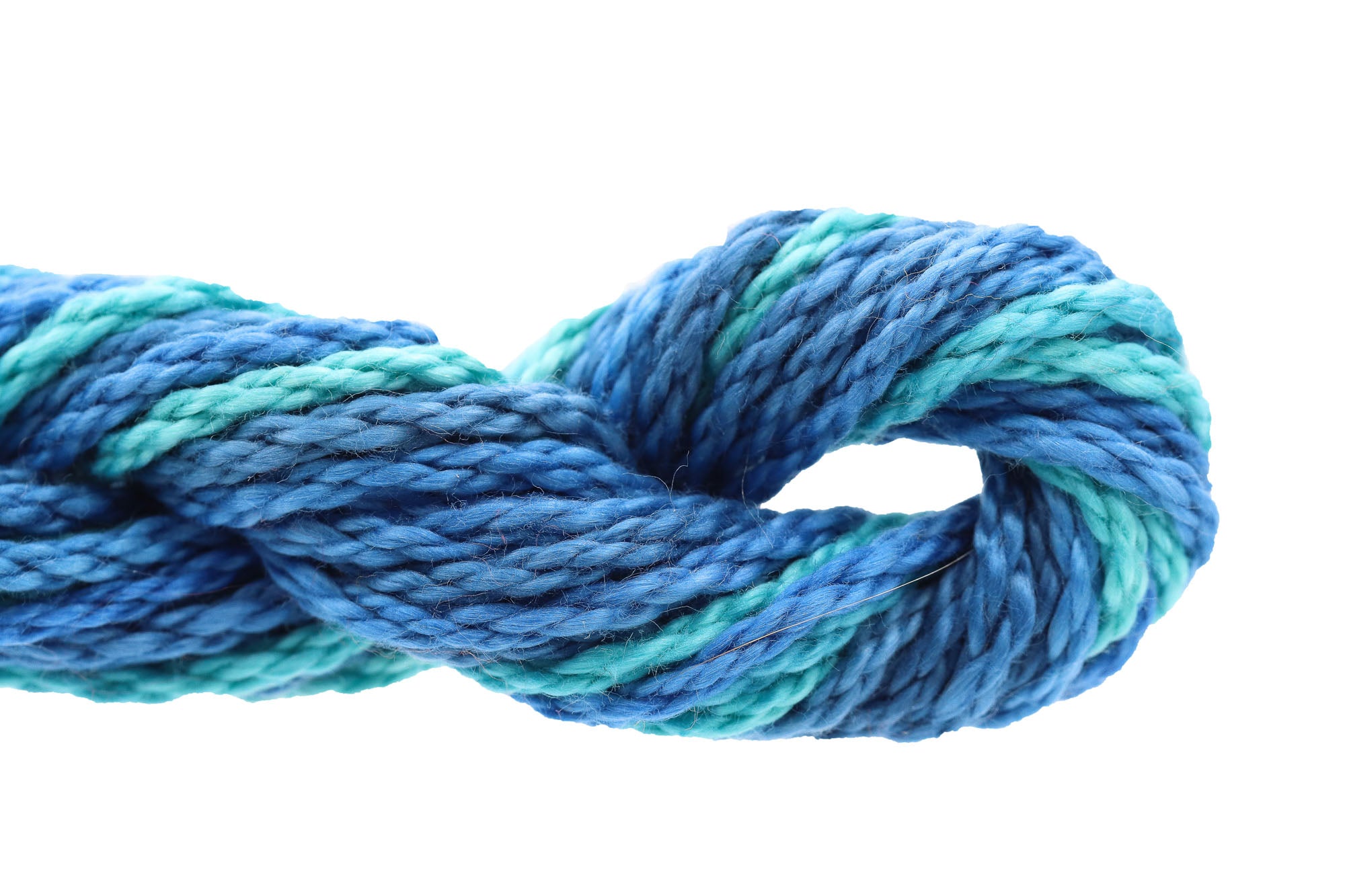 This is Watercolours from Caron Collection in color 068 Mediterranean. Rich variegated colors in stranded cotton. 2 strands on 13 mesh 1 strand on 18 mesh. 1 strand is about equivalent in size to #5 Perle Cotton.