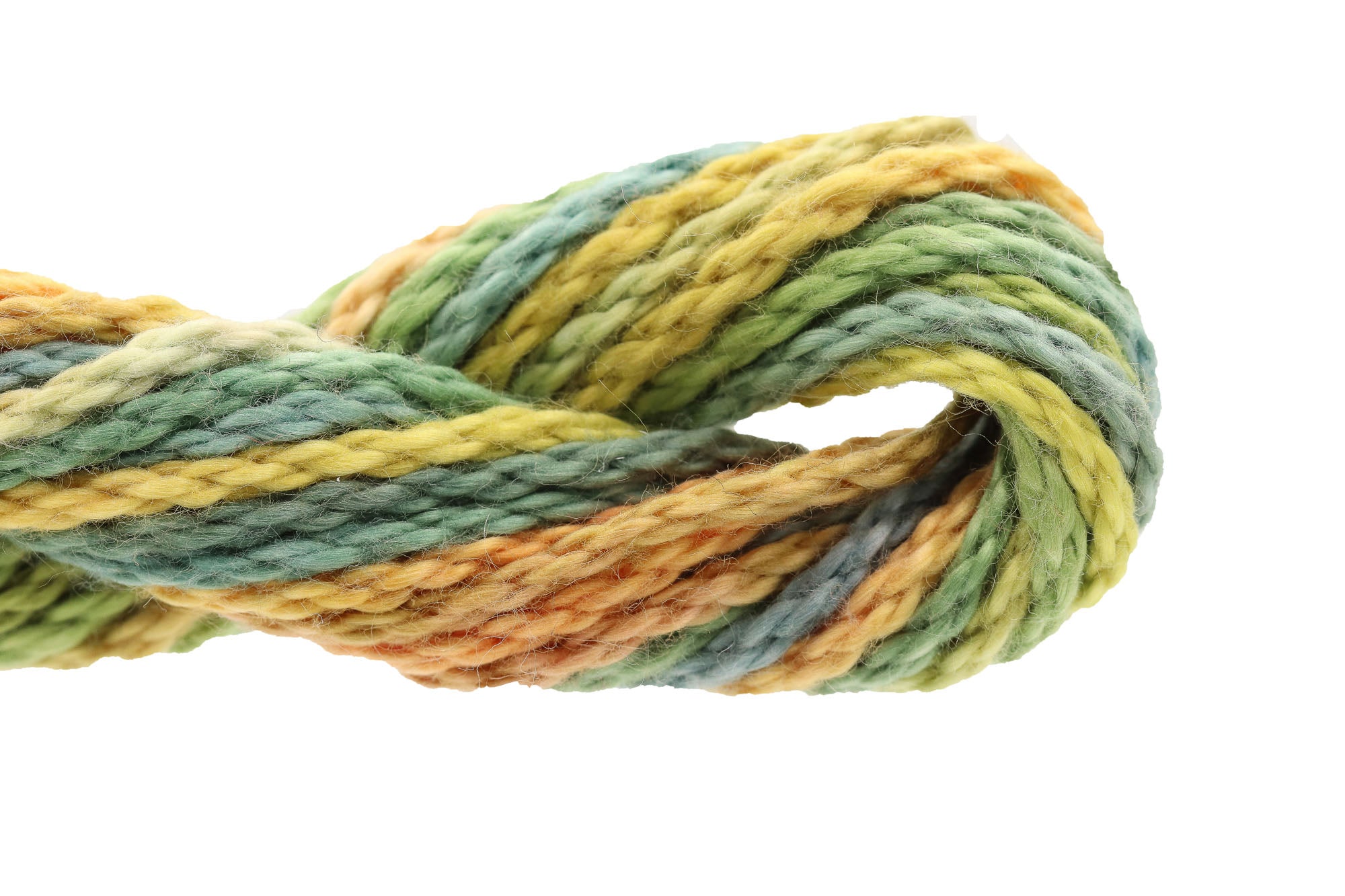 This is Watercolours from Caron Collection in color 076 Woodlands. Rich variegated colors in stranded cotton. 2 strands on 13 mesh 1 strand on 18 mesh. 1 strand is about equivalent in size to #5 Perle Cotton.