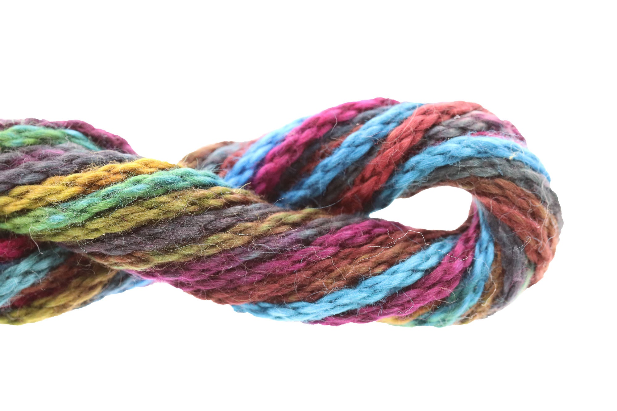 This is Watercolours from Caron Collection in color 077 Royal Jewels. Rich variegated colors in stranded cotton. 2 strands on 13 mesh 1 strand on 18 mesh. 1 strand is about equivalent in size to #5 Perle Cotton.