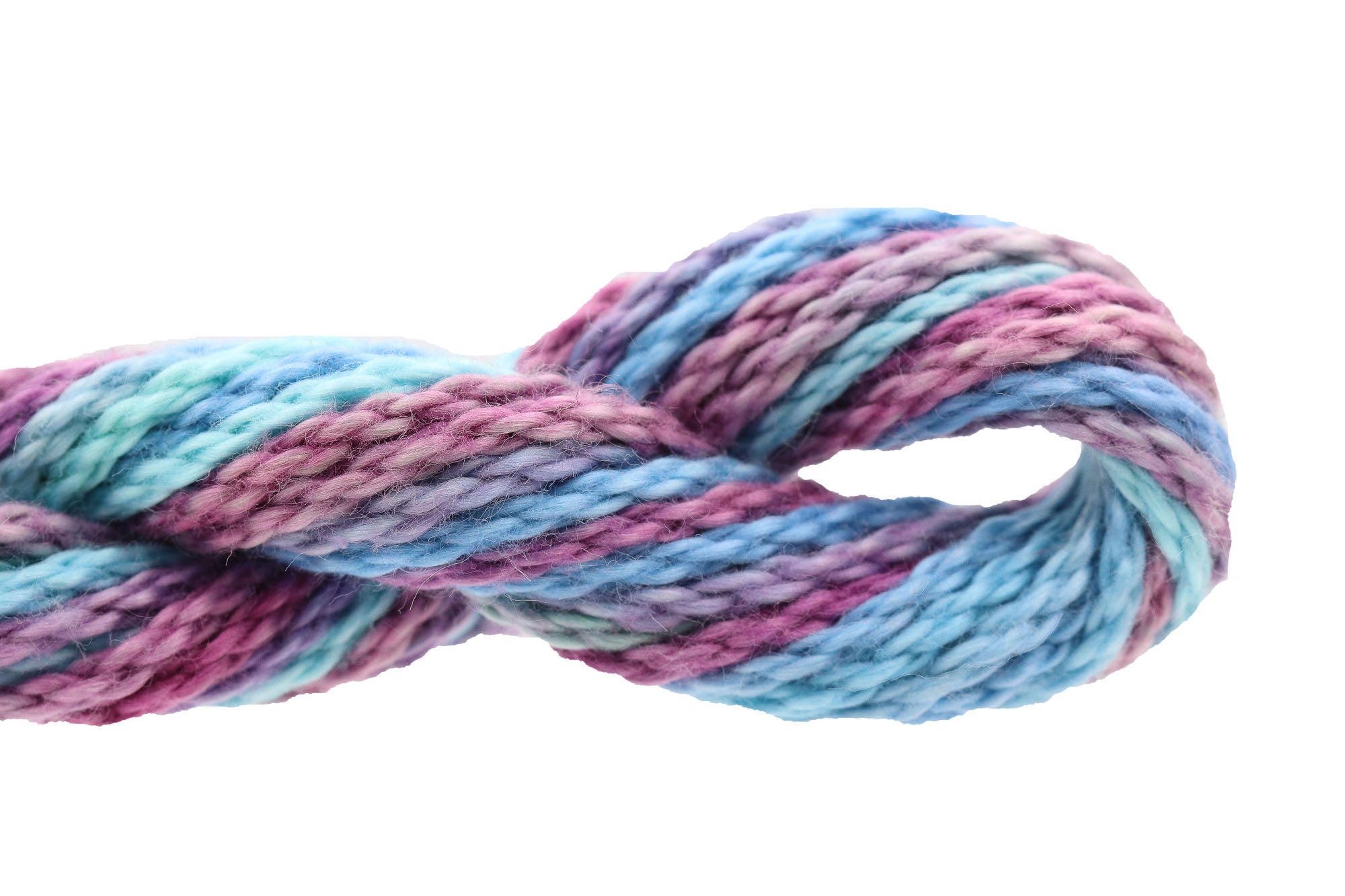 This is Watercolours from Caron Collection in color 080 Blue Lagoon. Rich variegated colors in stranded cotton. 2 strands on 13 mesh 1 strand on 18 mesh. 1 strand is about equivalent in size to #5 Perle Cotton.