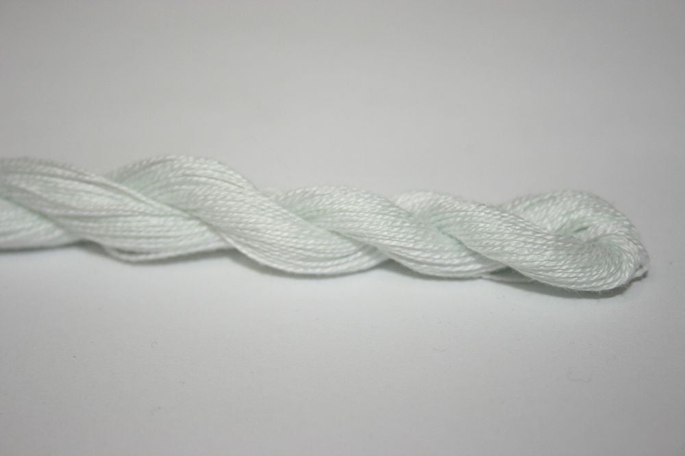 This is Wildflowers from Enriched Threads Caron Collection in color 129 Hint of Mint. Rich variegated colors in thin cotton. 3 or 4 ply on 13 mesh, 1 or 2 ply on 18 mesh. About equivalent in size to #8 Perle Cotton.