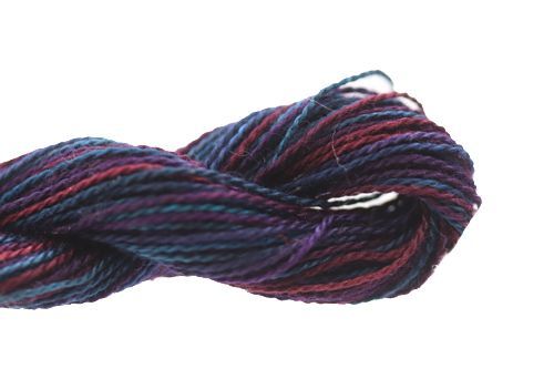 This is Wildflowers from Enriched Threads Caron Collection in color 163 Plum. Rich variegated colors in thin cotton. 3 or 4 ply on 13 mesh, 1 or 2 ply on 18 mesh. About equivalent in size to #8 Perle Cotton.