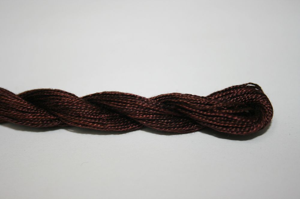 This is Wildflowers from Caron Collection in color 174 Mahogany. Rich variegated colors in thin cotton. 3 or 4 ply on 13 mesh, 1 or 2 ply on 18 mesh. About equivalent in size to #8 Perle Cotton.