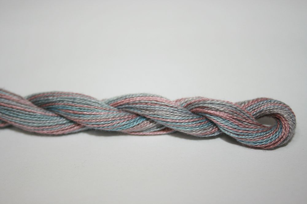 This is Wildflowers from Caron Collection in color 191 Avalon. Rich variegated colors in thin cotton. 3 or 4 ply on 13 mesh, 1 or 2 ply on 18 mesh. About equivalent in size to #8 Perle Cotton.