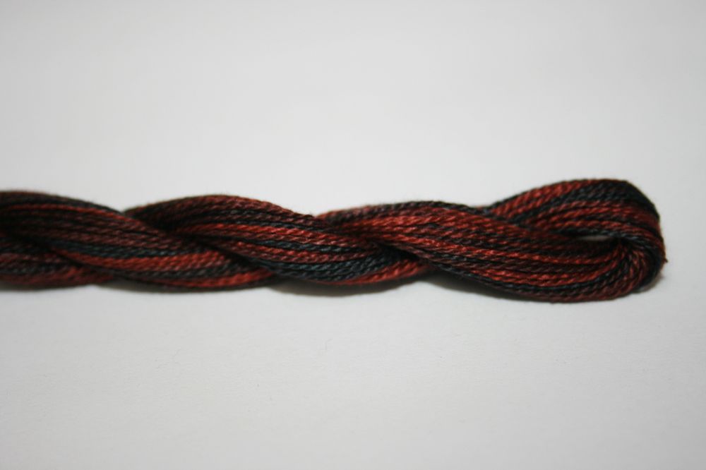 This is Wildflowers from Caron Collection in color 196 Sable. Rich variegated colors in thin cotton. 3 or 4 ply on 13 mesh, 1 or 2 ply on 18 mesh. About equivalent in size to #8 Perle Cotton.