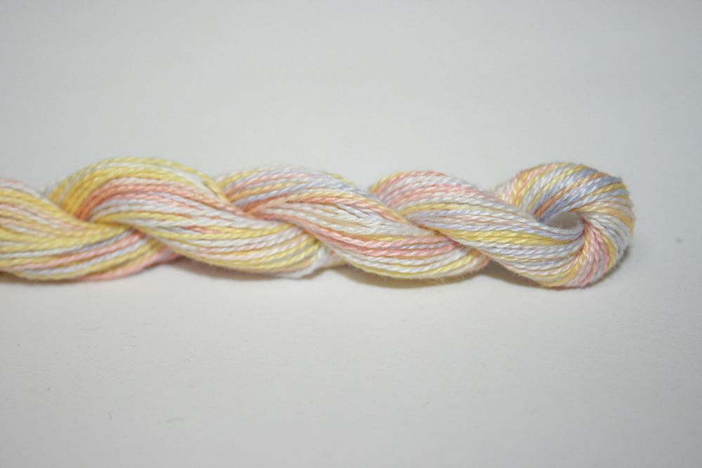 This is Wildflowers from Caron Collection in color 213 Sahara. Rich variegated colors in thin cotton. 3 or 4 ply on 13 mesh, 1 or 2 ply on 18 mesh. About equivalent in size to #8 Perle Cotton.