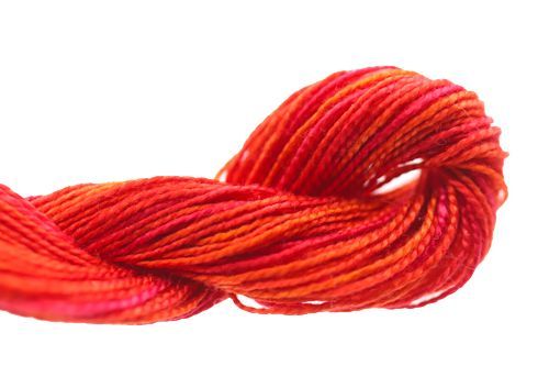 This is Wildflowers from Enriched Threads Caron Collection in color 221 Bittersweet. Rich variegated colors in thin cotton. 3 or 4 ply on 13 mesh, 1 or 2 ply on 18 mesh. About equivalent in size to #8 Perle Cotton.