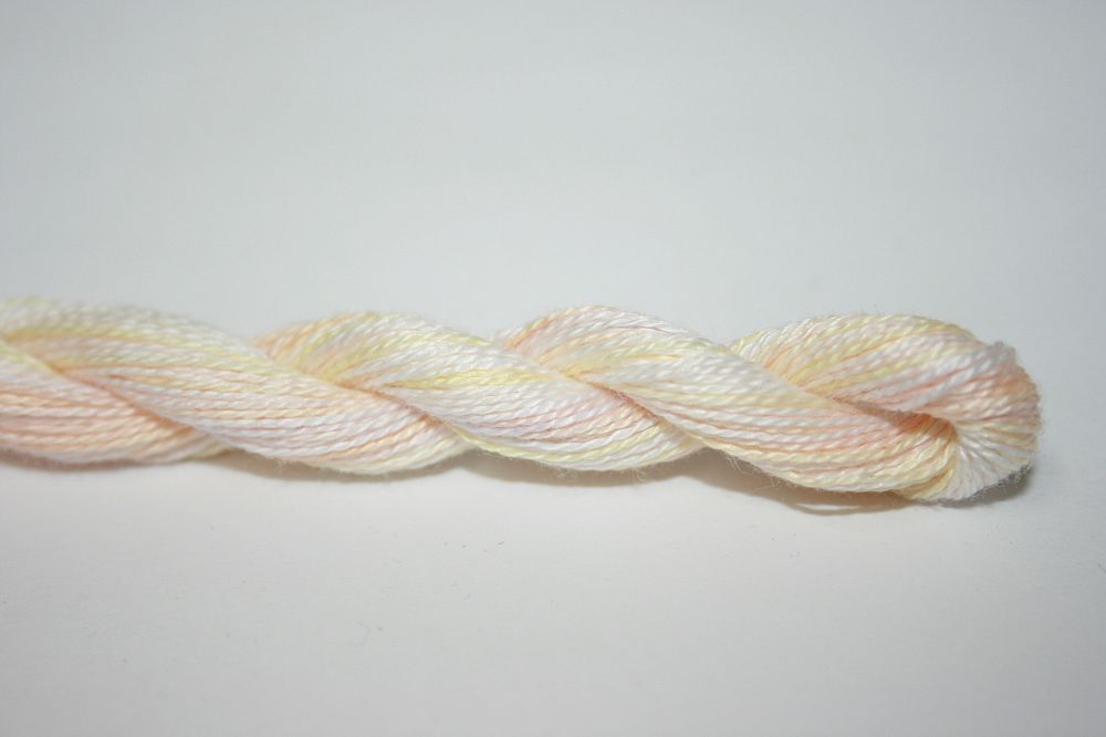 This is Wildflowers from Caron Collection in color 240 Stucco. Rich variegated colors in thin cotton. 3 or 4 ply on 13 mesh, 1 or 2 ply on 18 mesh. About equivalent in size to #8 Perle Cotton.
