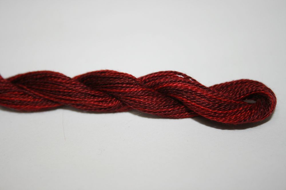 This is Wildflowers from Caron Collection in color 250 Claret. Rich variegated colors in thin cotton. 3 or 4 ply on 13 mesh, 1 or 2 ply on 18 mesh. About equivalent in size to #8 Perle Cotton.