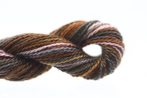 This is Wildflowers from Caron Collection in color 261 Karakum. Rich variegated colors in thin cotton. 3 or 4 ply on 13 mesh, 1 or 2 ply on 18 mesh. About equivalent in size to #8 Perle Cotton.