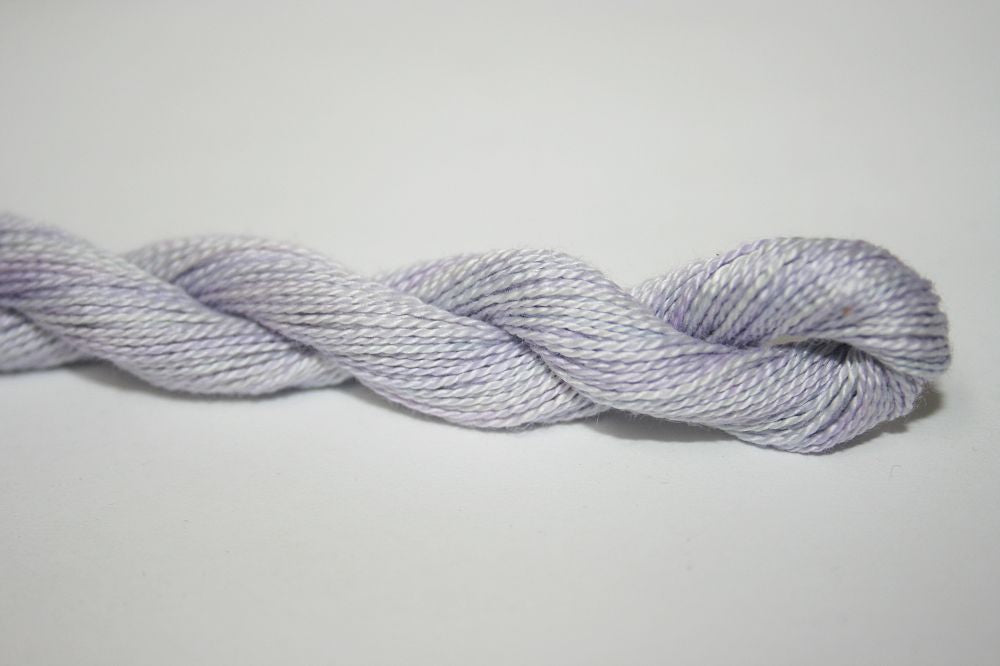 This is Wildflowers from Caron Collection in color 266 Smoky Mountain. Rich variegated colors in thin cotton. 3 or 4 ply on 13 mesh, 1 or 2 ply on 18 mesh. About equivalent in size to #8 Perle Cotton.