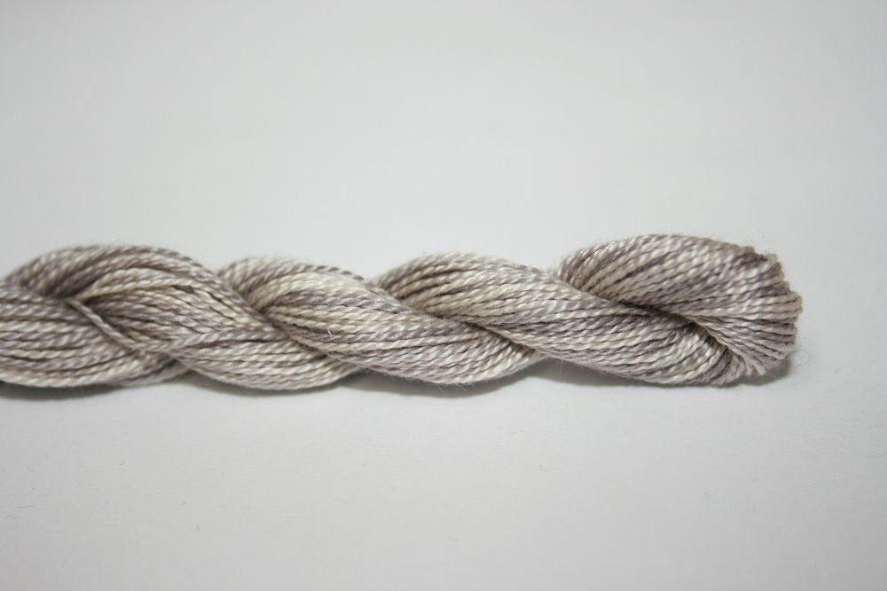 This is Wildflowers from Caron Collection in color 300 Belgian Stone. Rich variegated colors in thin cotton. 3 or 4 ply on 13 mesh, 1 or 2 ply on 18 mesh. About equivalent in size to #8 Perle Cotton.