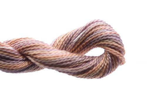 This is Wildflowers from Caron Collection in color 301 Tuscan Mist. Rich variegated colors in thin cotton. 3 or 4 ply on 13 mesh, 1 or 2 ply on 18 mesh. About equivalent in size to #8 Perle Cotton.