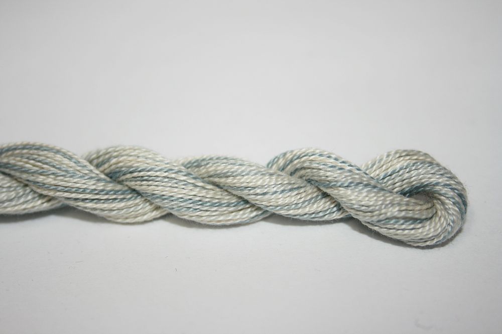 This is Wildflowers from Caron Collection in color 302 Mount Everest. Rich variegated colors in thin cotton. 3 or 4 ply on 13 mesh, 1 or 2 ply on 18 mesh. About equivalent in size to #8 Perle Cotton.