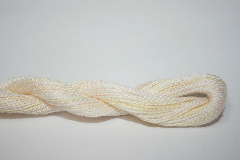 This is Wildflowers from Caron Collection in color 316 Creme Fraiche. Rich variegated colors in thin cotton. 3 or 4 ply on 13 mesh, 1 or 2 ply on 18 mesh. About equivalent in size to #8 Perle Cotton.