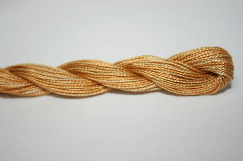 This is Wildflowers from Caron Collection in color 328 Old Gold. Rich variegated colors in thin cotton. 3 or 4 ply on 13 mesh, 1 or 2 ply on 18 mesh. About equivalent in size to #8 Perle Cotton.
