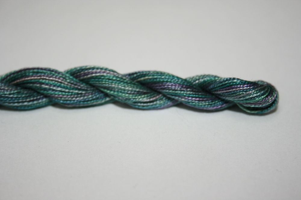 This is Wildflowers from Caron Collection in color 051 Abalone. Rich variegated colors in thin cotton. 3 or 4 ply on 13 mesh, 1 or 2 ply on 18 mesh. About equivalent in size to #8 Perle Cotton.
