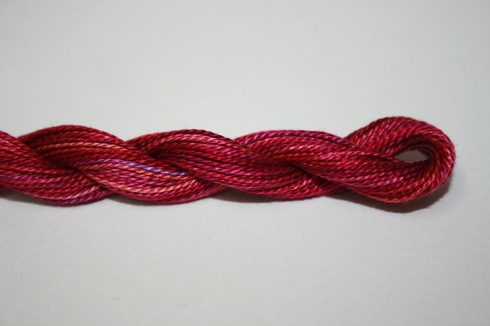 This is Wildflowers from Caron Collection in color 084 African Sunset. Rich variegated colors in thin cotton. 3 or 4 ply on 13 mesh, 1 or 2 ply on 18 mesh. About equivalent in size to #8 Perle Cotton.