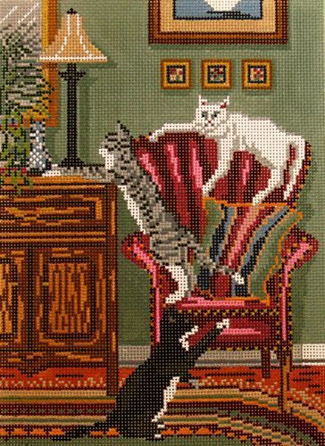 A beautiful hand painted needlepoint canvas from Needle Crossings. These guys are a real handful I.