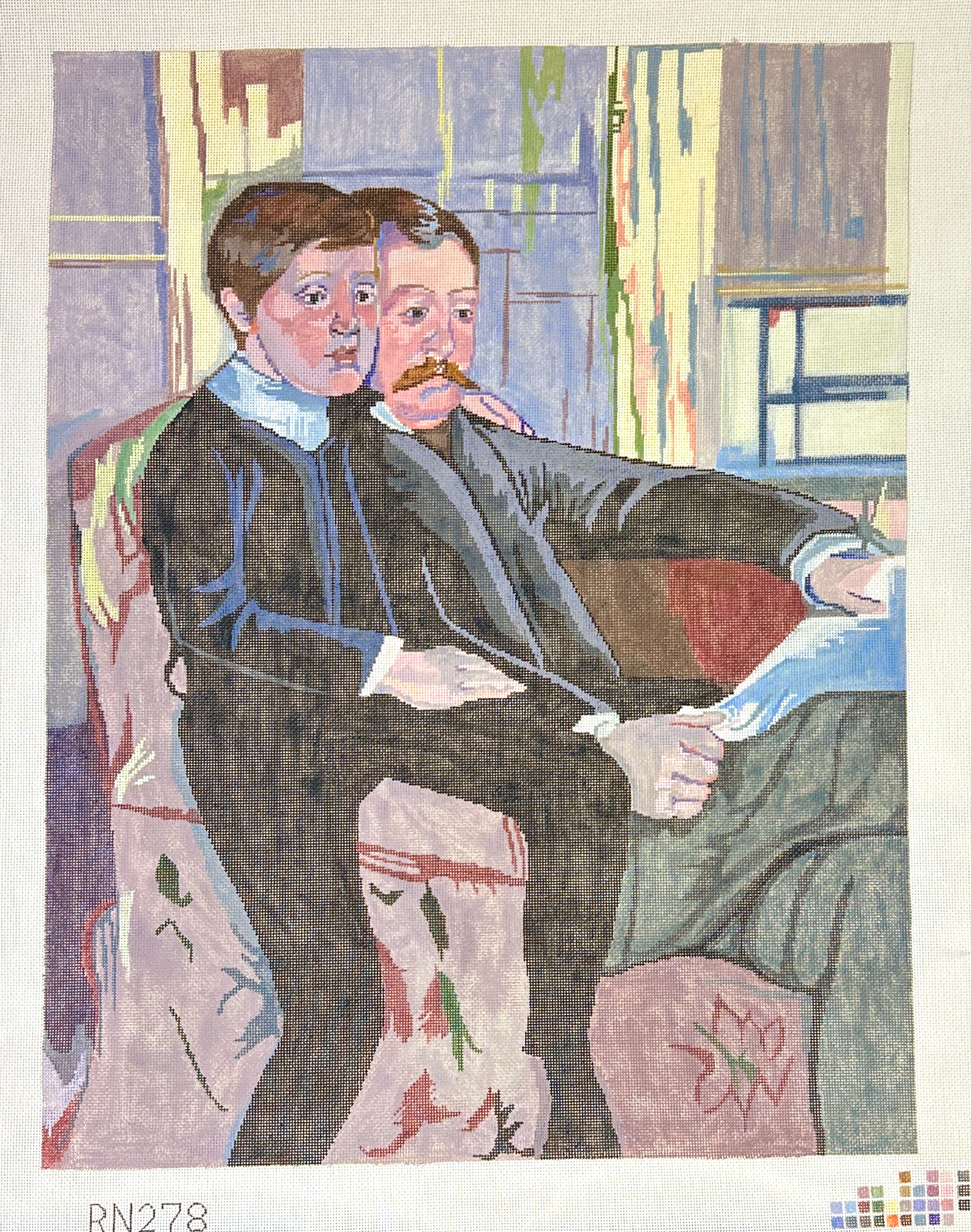 This hand painted needlepoint canvas by Changing Woman Designs features a reproduction of a painting by Mary Cassatt.