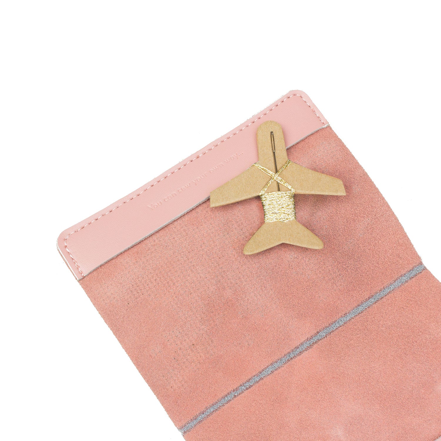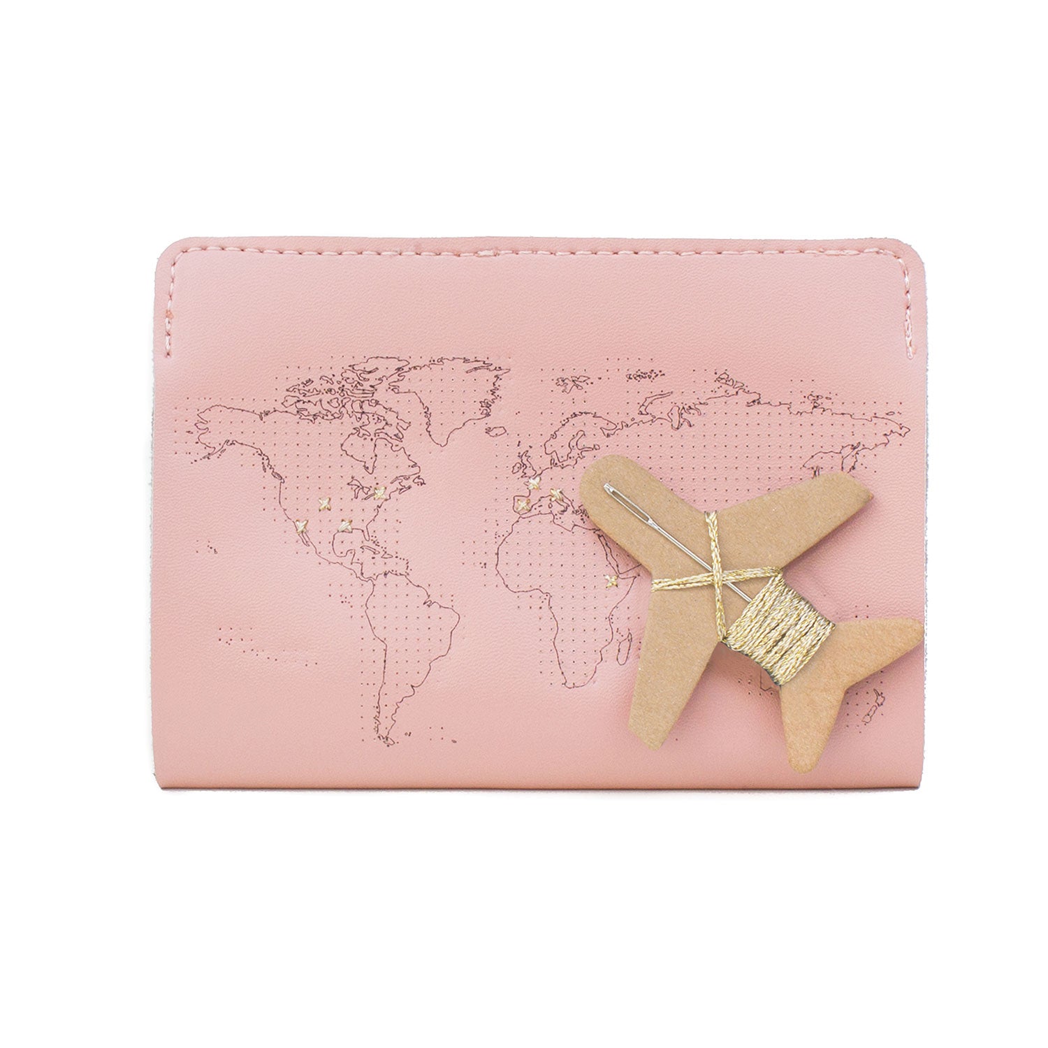 Show off your extensive world travels with this ‘Stitch where you’ve been’ passport cover. The pretty pastel pink leather passport cover is printed with the world map and specially perforated, so each country visited can be marked with a metallic cross. The kit includes the leather passport cover, metallic gold thread, and a needle.