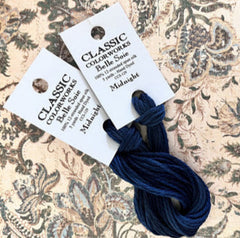 This is Belle Soie from Classic Colorworks in color Midnight. Luxurious strandable silk with soft variegation. Perfect for needlepoint, embroidery, and cross stitch! Use 6 strands on 13 mesh, 3 or 4 on 18 mesh.