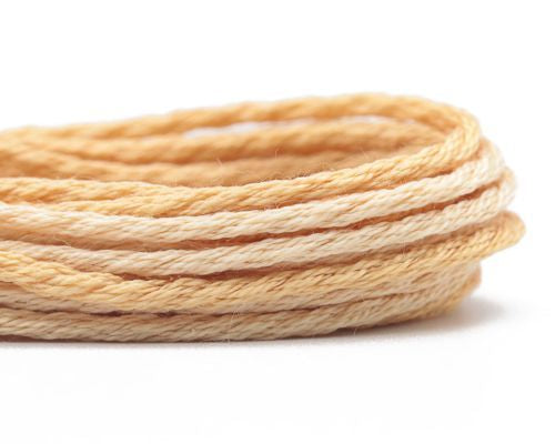 This is Belle Soie from Classic Colorworks in color Apricot. Luxurious strandable silk with soft variegation. Perfect for needlepoint, embroidery, and cross stitch! Use 6 strands on 13 mesh, 3 or 4 on 18 mesh.