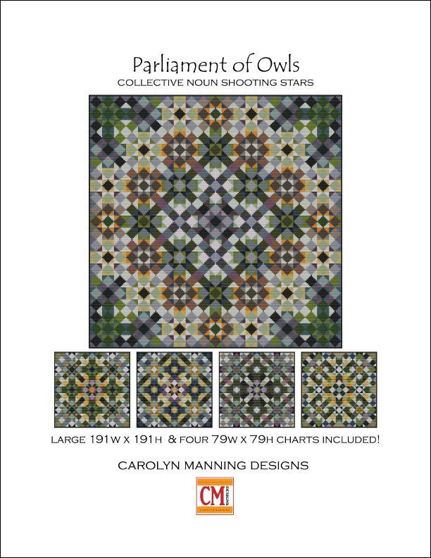 This cross stitch pattern by CM Designs is inspired by the shooting star quilt pattern and also includes 4 smaller patterns with the same color palette. These are all full coverage pattern.