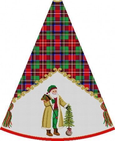 Susan Roberts Needlepoint Shearling Coat Santa Tartan Tree Skirt Needlepoint Canvas is a hand painted needlepoint canvas from Susan Roberts Needlepoint.