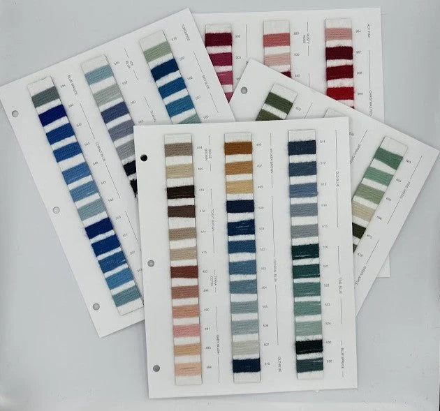 Colonial Persian is an exceptional wool yarn, crafted with quality, durability, and luxurious color. It comes from the original American spinner of Paternayan Yarn, renowned for its strong, 3-ply, 100% long-staple virgin wool. Crafters can trust its strength for seamless stitching without fraying or breaking. The Colonial Persian color card features thread wrapped cards on pages in a handy binder.