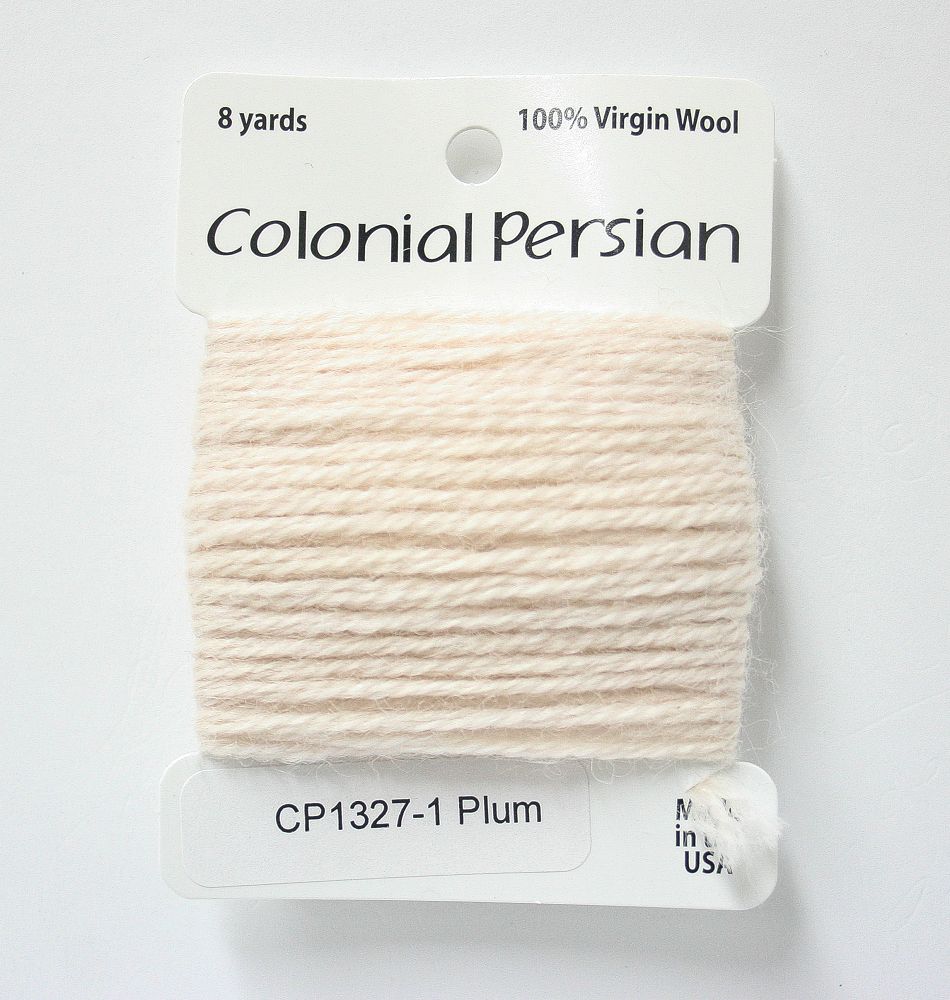 This is Colonial Persian from Colonial Needle Co in color Plum. A traditional needlepoint fiber. Comparable to the now-discontinued Paternayan wool. Use all three strands on 10 mesh, 2 strands on 13 mesh, 1 strand on 18 mesh. 1 strand is about equivilant to 1 strand of crewel wool.
